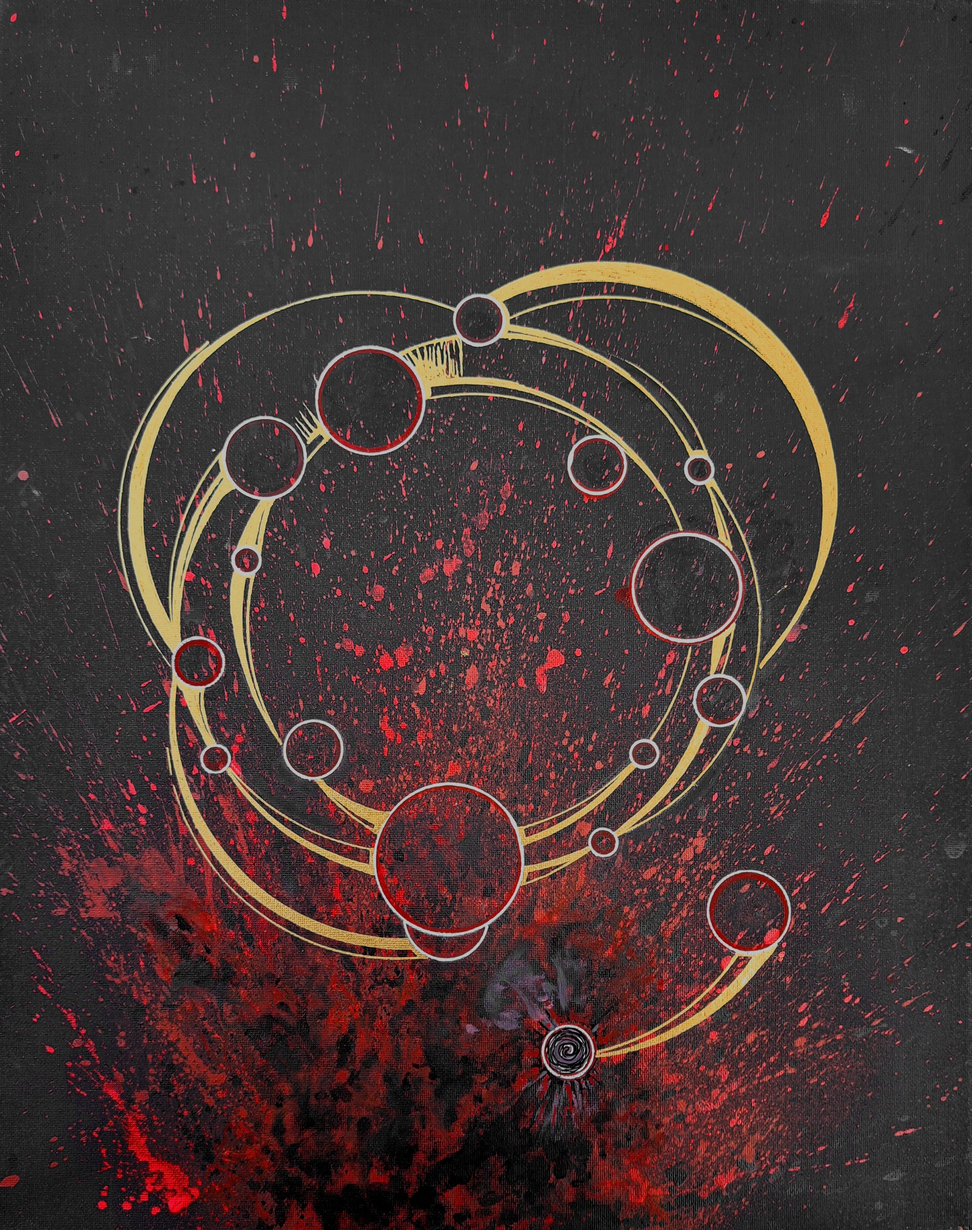 Posca & Pilot (gold, silver) pens, acrylic on canvas.