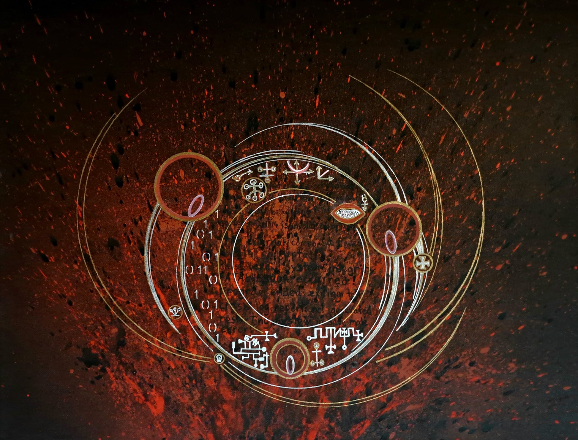 Posca & Pilot (gold, silver) pens, acrylic on canvas.