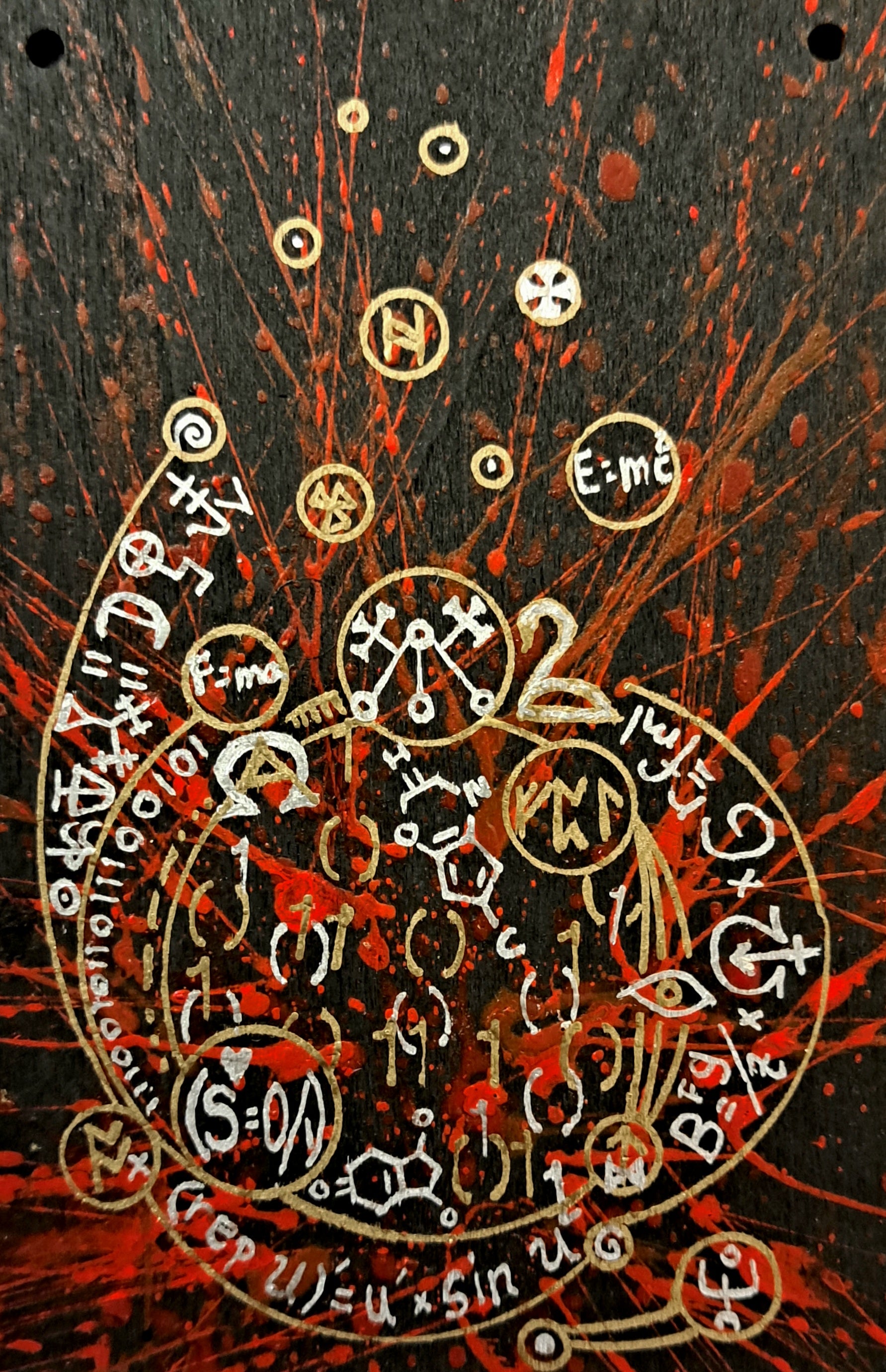 Posca & Pilot (gold, silver) pens, acrylic on cradled wood.